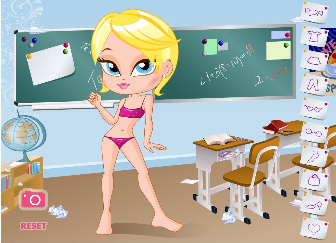 Ta dziewczyna chce świetnie wyglądać w szkole, aby zaimponować koleżankom i kolegom. Pomóż jej uzyskać ten efekt poprzez dobór odpowiednich ubrań.