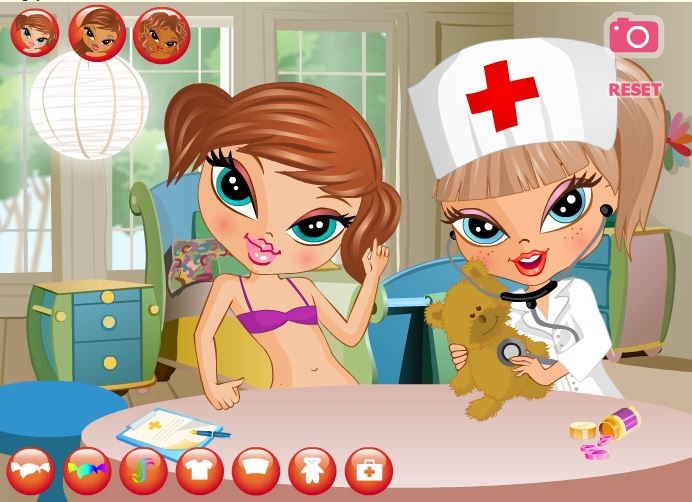 Dwie koleżanki bawią się w lekarzy. Chcą wyleczyć chorego misia. Jednak by tego dokonać, muszą najpierw założyć odpowiednie lekarskie ciuszki.