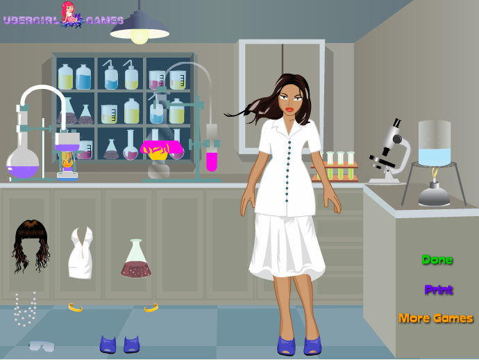 Stwórz odpowiedni look dla młodej pani naukowiec. Spraw, by w laboratorium podczas wykonywania swojej pracy wyglądała super.