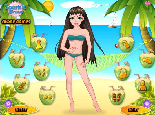 Tym razem dziewczyna przebywa na gorącej plaży w tropikach. Twoim zadaniem jest zapewnić jej fajne plażowe wdzianko wraz z dodatkami.