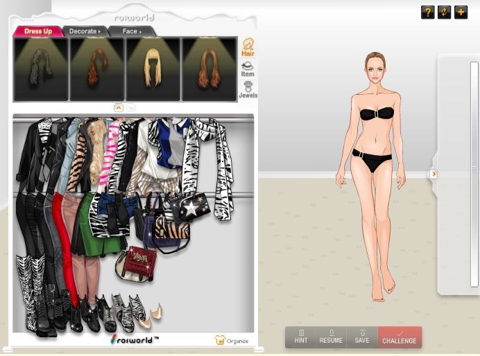 Tym razem ubieramy młodą kobietę w ciuszki we wzory zeberkowe. Musimy dopasować odpowiedni zestaw i pasujące do niego dodatki.