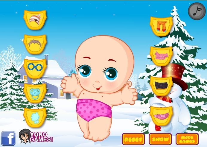 Ubierz małego dzieciaka na zimową porę. Dopasuj ciuszki, dodatki i ozdoby. Niech wygląda uroczo i niech będzie mu ciepło.