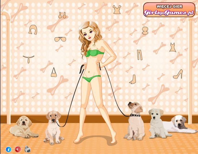 Ubierz młodą dziewczynę, która wybiera się na spacer ze swoimi pieskami. Niech wygląda ładnie, by jej podopieczni szczekali radośnie.