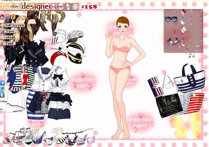 Dziewczyna wybiera się na statek, by odbyć rejs. W związku z tym chciałaby ubrać się w marynarskie wdzianko. Dopasuj dla niej coś fajnie wyglądającego.