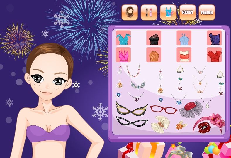 Nastolatka wybiera się na bal sylwestrowy i jest załamana, bo nie ma pojęcie, co na siebie założyć. Pomóż jej wybrać super kieckę. Dzięki Tobie może wyglądać olśniewająco!