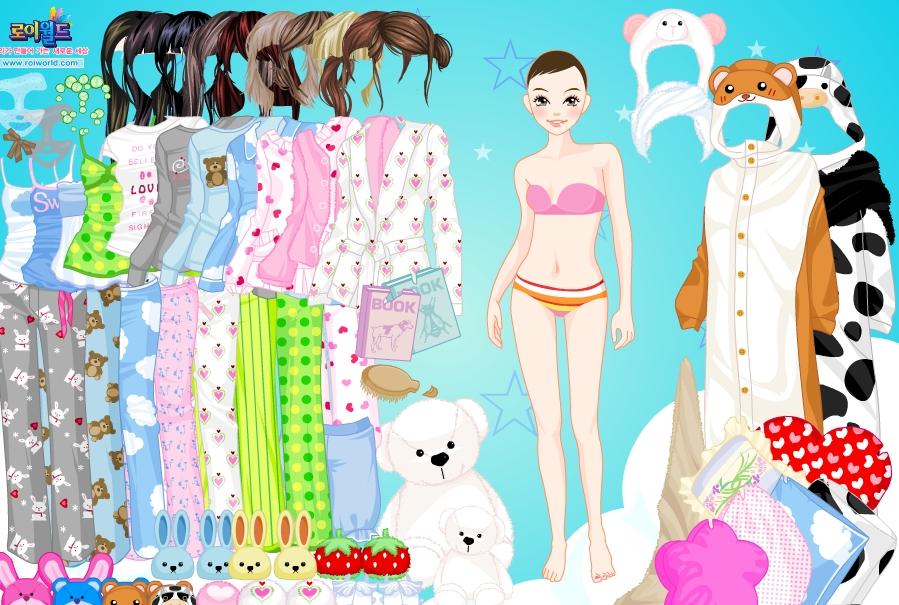 Nastolatka po długim ciężkim dniu przygotowuje się do snu. Musimy wybrać dla niej odpowiednie pidżamki, aby fajnie jej się spało.