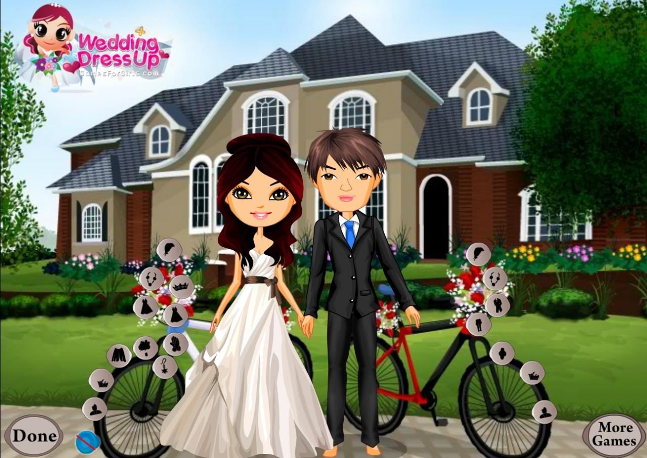 Ta para zamierza dojechać do kościoła, by wziąć ślub na rowerze! Ale Państwo Młodzi proszą Cię o wybór pięknych strojów ślubnych. Postaraj się, by wyglądali cudownie!