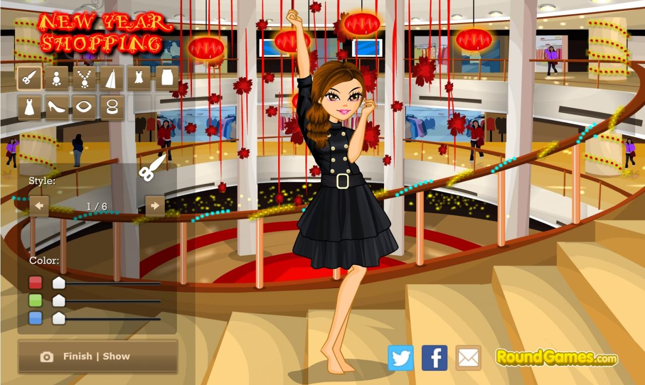 Dziewczyna wyruszyła na noworoczne zakupy. Postanowiła ona, że wraz z nadejściem nowego roku zmieni swój styl, dlatego będziesz jej bardzo potrzebna. Idź razem z nią i pomóż jej wybrać świetne ciuszki, które będą do niej pasować.