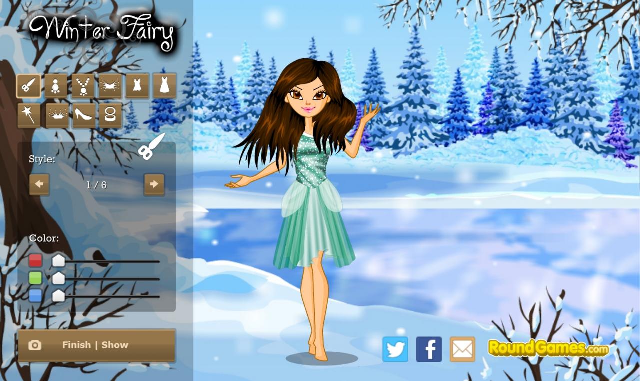 W zimie wróżki bardzo dbają o swój wygląd, ta jednak nie wie jeszcze jaką wybrać sukienkę, by świetnie komponować się na łonie natury. Może spróbujesz jej doradzić, co powinna na siebie włożyć?