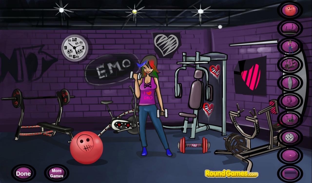 Nastolatka emo wyruszyła na siłownie. Nastał czas na ćwiczenia, ale jeśli ćwiczenia, to tylko w wygodnym stroju. Wybierz więc dla niej taki strój, niech wygląda fajnie!