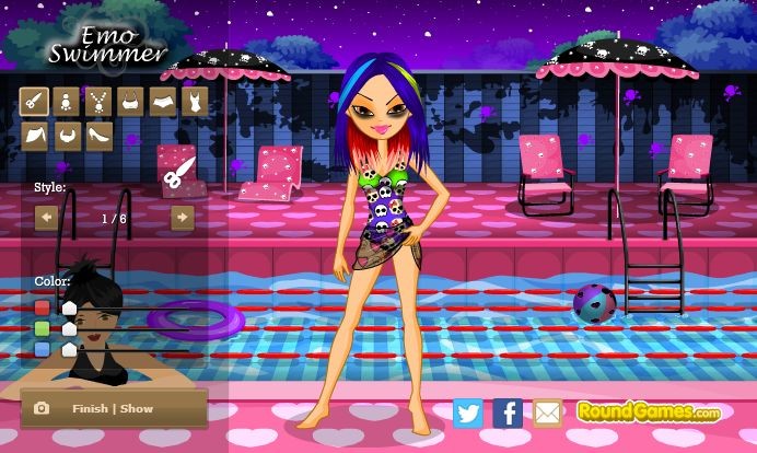 Nastolatka wybrała sobie już swój ulubiony styl, czyli emo. Teraz jest na basenie i nie ma jeszcze fajnego storju kąpielowego. Doradź jej, jaki powinna wybrać strój, by wyglądała super!