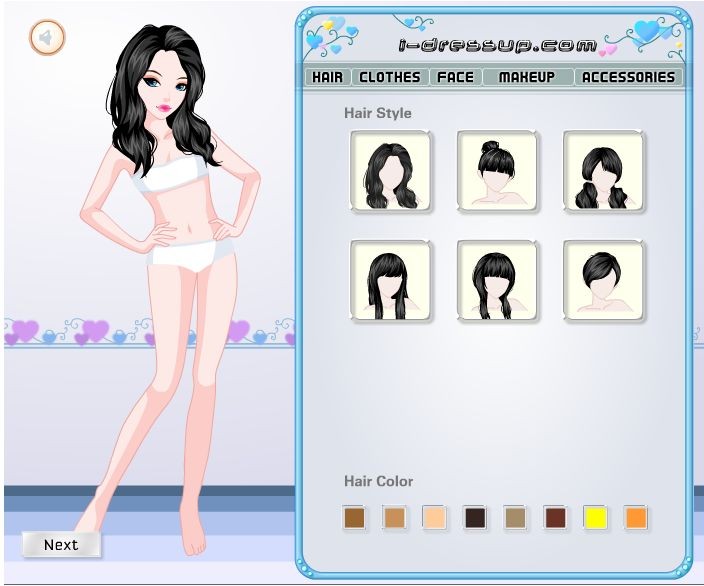 Musisz się zająć dziewczyną, tak aby wyglądała bardzo stylowo. Wybierz dla niej twarz, włosy, makijaż i strój.