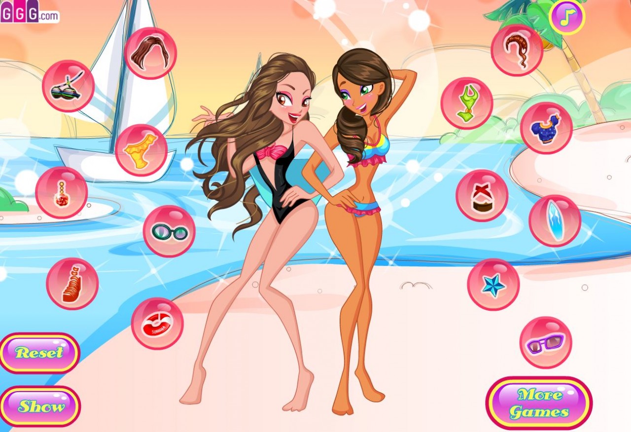 Dwie piękne nastolatki rozpoczeły już wakacje! Dziewczyny są szczęśliwe, że mają mnóstwo wolnego czasu.. Wyruszyły już na słoneczną plażę. By ładnie wyglądały, wybierz dla nich urocze bikini i akceStart_Of_Summer.swfsoria!