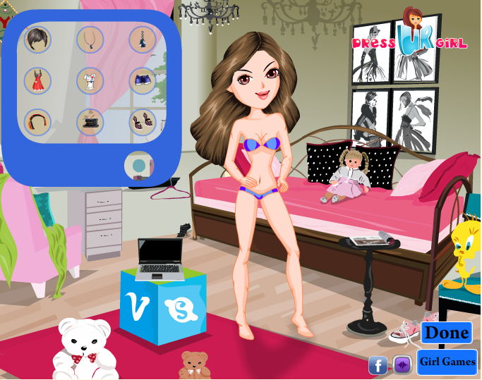 Ta dziewczyna jest fanką portali społecznościowych. Być może jest nawet od nich uzależniona. W swojej szafie posiada ubrania z logami różnych stron. Pobaw się jej ciekawą kolekcją i dobierz coś odpowiedniego.