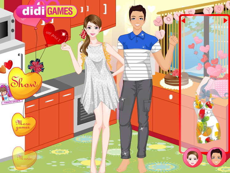 Ubierz według własnego gustu słodką parę. Oprócz dziewczyny masz szansę dobrać ciuchy również dla chłopaka. Pochwal się w komenatrzach, czy miłosna para spędziła cudnie czas w domowym zaciszu!