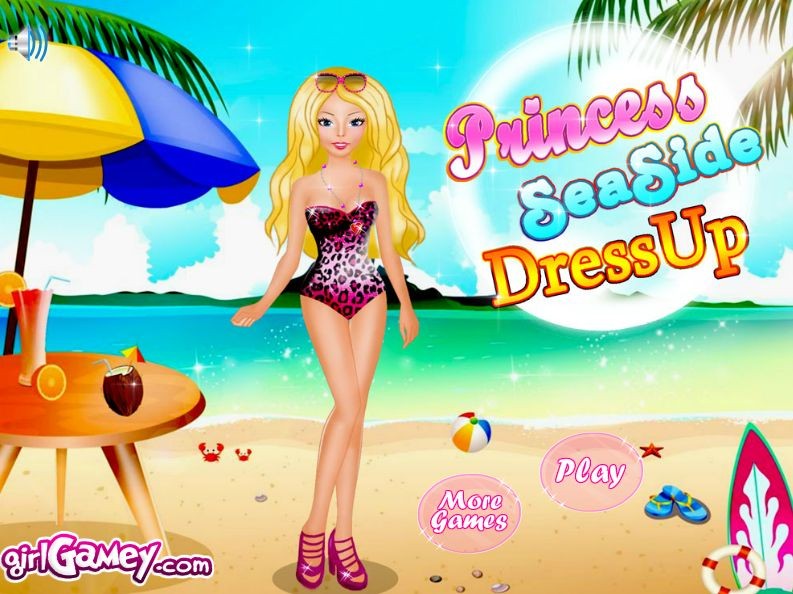 Zadbaj o strój kąpielowy dziewczyny. Skorzystaj z dostępnych kompletów dwuczęsciowych lub pełnych stroi, które zakrywają brzuszek księżniczki. Piękna dziewczyna nawet na plaży musi mieć biżuterię oraz szpilki. Wybierz te najciekawsze i zrób zdjęcie!